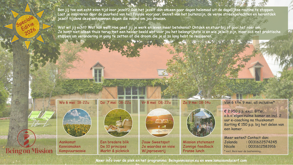 Geniet een paar dagen als god in Frankrijk én creer een persoonlijk kompas om gerichter keuzes te maken in je leven en werk!